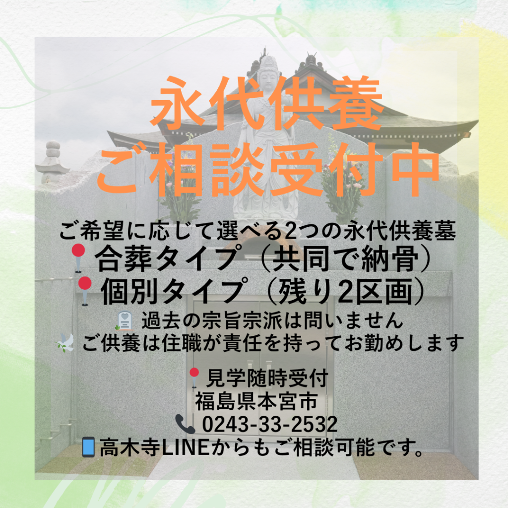 高木寺では、令和7年のお盆期間にあたり、以下の通りご供養の場…